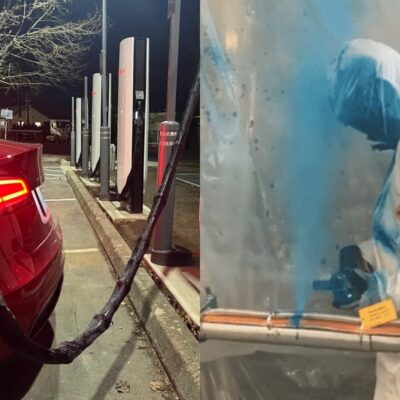 Tesla тестує кілька креативних рішень, які допоможуть запобігти крадіжкам зарядного кабелю на станціях Supercharging — і один з таких передбачає, що злодію в обличчя раптово